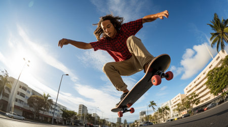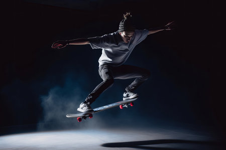 Generative AI : guy does some trick with his skateboard hobby and lifestyle concept