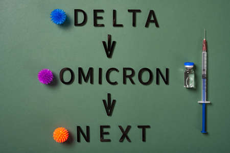 A doctor holds vaccine against new covid-19 omicron variant. New generation vaccine against Coronavirus South African variant. Omicron variant of SARS-CoV-2. New B.1.1.529 Variant of concern