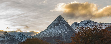 Snowy andes range mountain at autumn season landscape, Tierra del Fuego province, Argentina