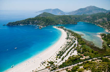 oludeniz lagoon in sea landscape view of beach, Turkey