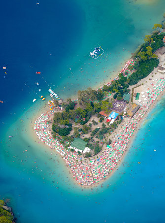 Oludeniz beach from the air, Fethiye, Turkey