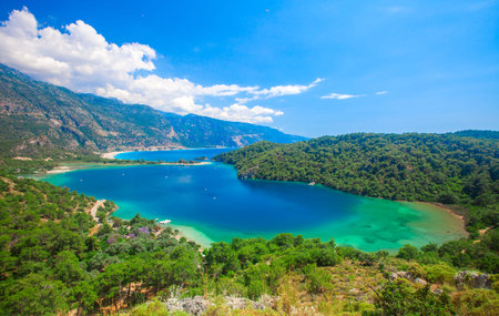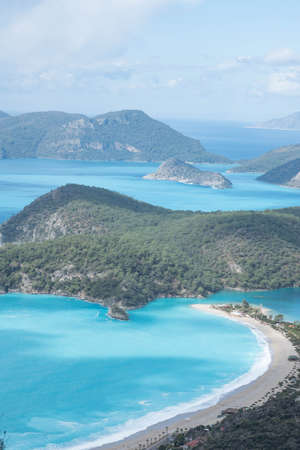 Summer view to Oludeniz lagoon beach landscape Fethiye Turkey