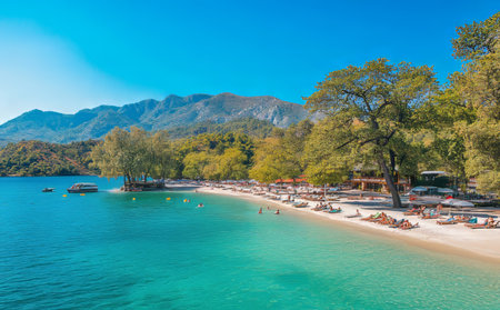 Breathtaking view of alata beach in old cumberland, fethiye with turquoise waters and mountains