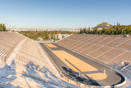 Greece ancient Panathinaikos stadium in Athens, antique architecture, cityscape