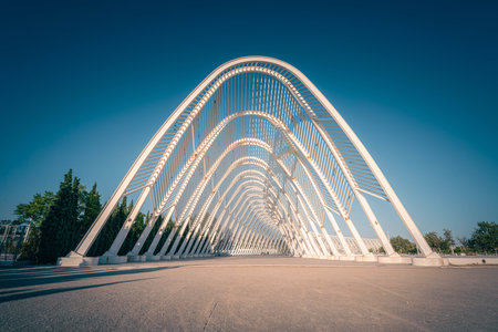 Buildings and architecture at the Athens Olympic Stadium at dusk