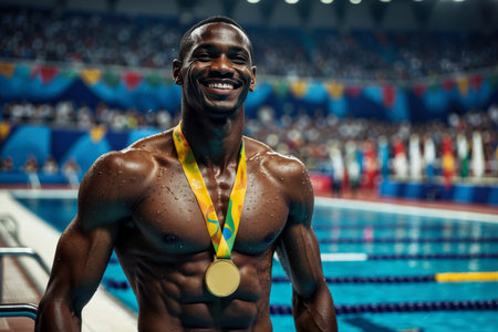 AI Generative Awarding champion winners in sports swim in pool, summer Olympic games competitions