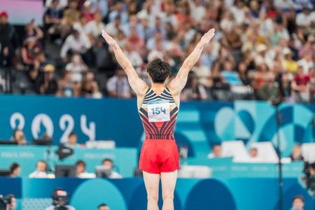 Daiki Hashimoto (JPN) of Japan, competes in the Men's All-Around Finals at the Stade de France Stadium during the 2024 Paris Summer Olympics in Paris, France.