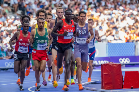 RONALD KWEMOI (KEN) of Kenya, competes in the Men's 5000m Round 1 at the Stade de France Stadium during the 2024 Paris Summer Olympics in Paris, France.