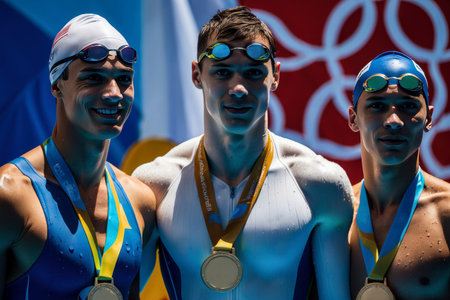AI Generative Awarding champion winners in sports swim in pool, summer Olympic games competitions