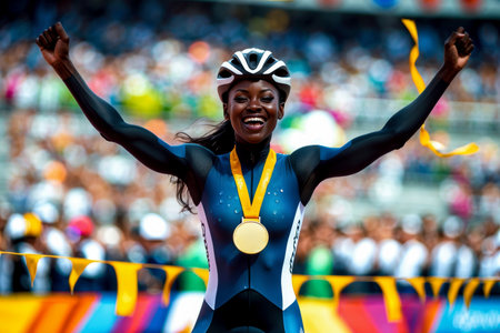 AI Generative Woman Athlete Cyclist Riding Sport Cycling Race Summer Olympic games Competition