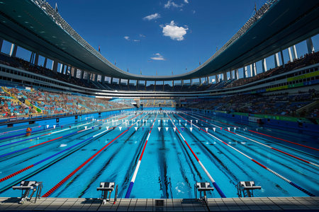 swimming pool with swimmers at the stadium, Olympic game