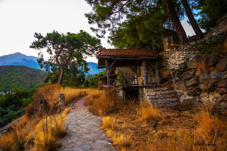 Ruins on mountains Likya Yolu way in Turkey, autumn hiking