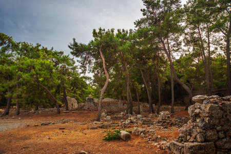 PHASELIS, TURKEY: Ruins of the Ancient city of Phaselis in the forest, village of Tekirova, Antalya province, near Kemer, Turkey.