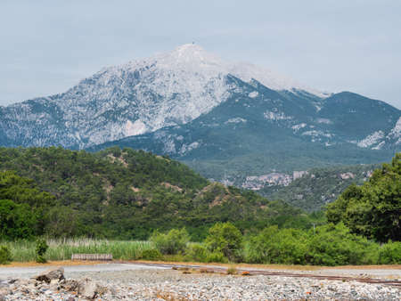 View of Tahtali or Lycian mountain from ancient Phaselis city. Turkey.