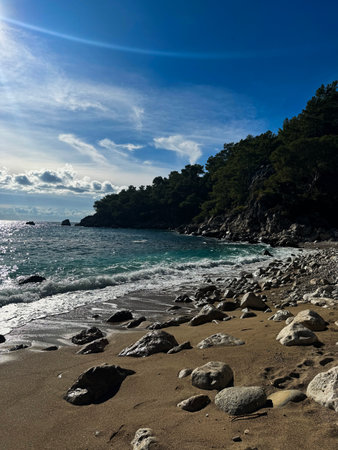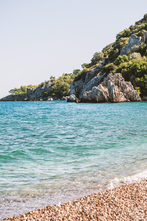 Beach near of ancient greek and roman ancient city of Olympos coast Antalya Turkey