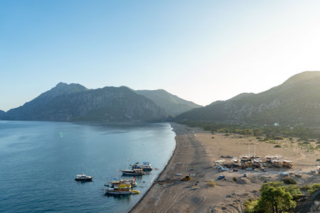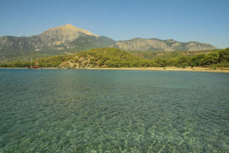 View of Olympos - Chiraly beach and Mediterranean Sea on sunny summer day. Turkey.