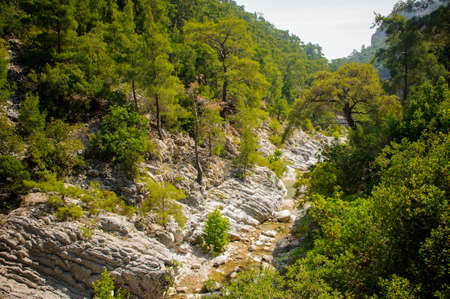 Amazingly beautiful gully of rocks with trees on each side in the natural conditions in Turkey