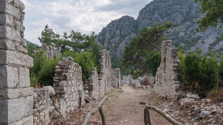 Ancient Ruins of Olympos Turkey Surrounded by Nature on a Serene Path with Historic Stone Walls