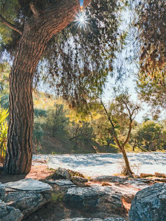 Old trees in the mediterranean South Europe region. Beautiful nature to relax during a summer holiday.