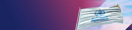 Organization flag G20 membership on the background of clouds, fabric flag G20 membership, blue sky background with G20 membership flag, 3D work and 3D image