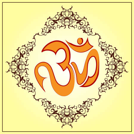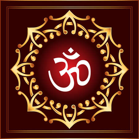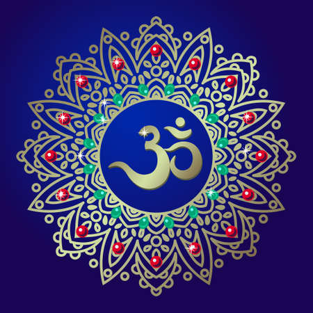 Om or Aum Indian sacred sound, original mantra, a word of power. The symbol of the divine triad of Brahma, Vishnu and Shiva. The rich round mandala. For prints, textiles, mehendi.