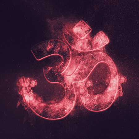 Om symbol from smoke at black background. Free space for text and Can be used as template