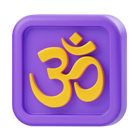 3D Om of Hinduism lucky symbol flat 3D Render Icon for Apps and Websites Design.