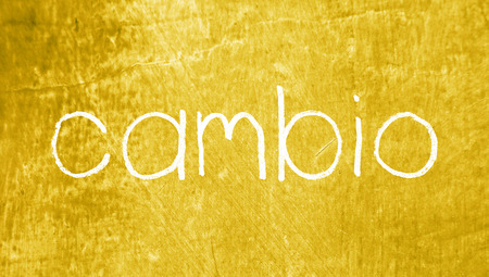 Cambio or change in english written in spanish on yellow chalkboard