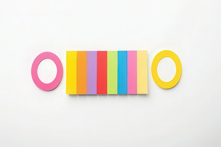 top view of word ooo made of colorful paper on white background