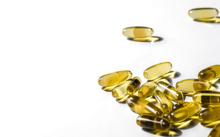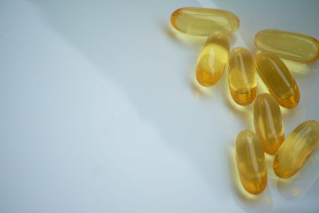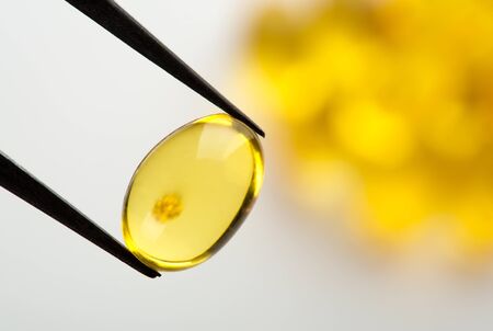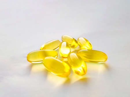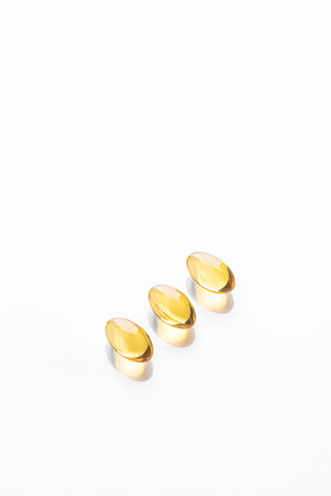 Oil filled capsules on the white background