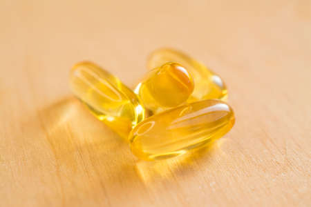 fish oil capsules the higher vitamin and omega3 supplement product on wooden table in selective focus
