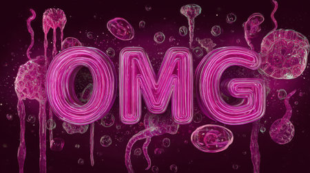This eye-catching illustration features the word OMG in vibrant neon pink, surrounded by bubbles and organic shapes, perfect for expressions of surprise and excitement.
