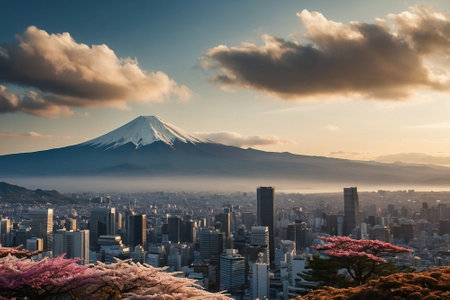 Fuji mountain with cherry blossoms in Tokyo Japan