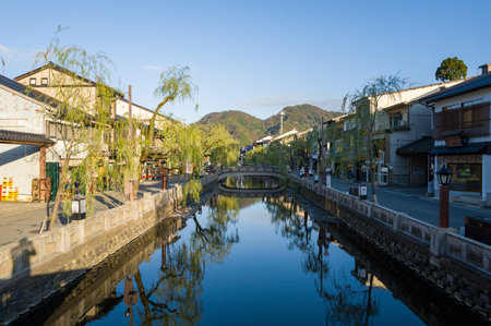 On the morning of spring, the quiet townscape of the Kurashiki Bikan District (Kurashiki River, Kurashiki City, Okayama Prefecture)