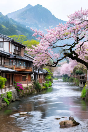 Nagato Yumoto Onsen in spring when cherry blossoms bloom