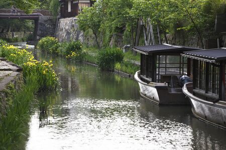 Beautiful cherry blossoms along Takase river in Kyoto, Japan 10 April 2012