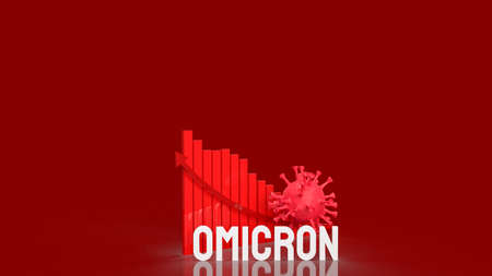 virus omicron and chart on red background 3d rendering