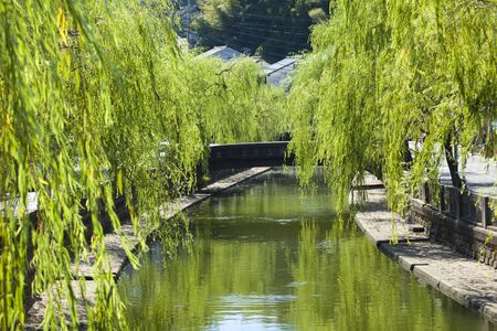 Water canal in Japan city, Beautiful landscape of Japanese public irrigation canal.