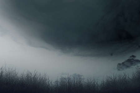 Nature, in front of a stormy sky cloud, stratus cumulus rain clouds. Anxious mood. For background