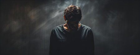 Man in shadow facing internal struggles and pain isolated and overwhelmed. Concept Grief, Mental Health, Isolation, Pain, Coping Strategies