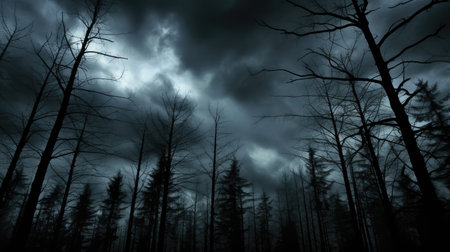 Dark and brooding clouds gathering over a dense forest
