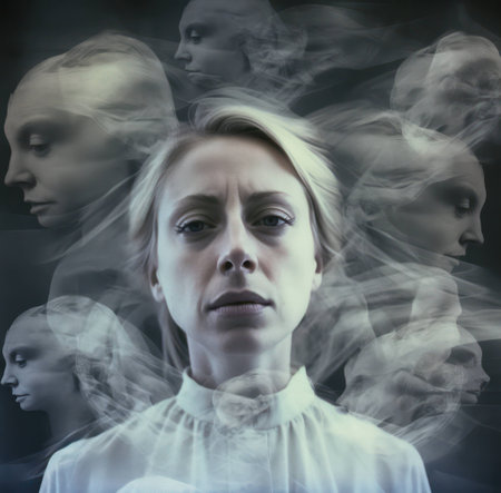 Woman bipolar mental background personality group cry anxiety depressed ego disorder multiple