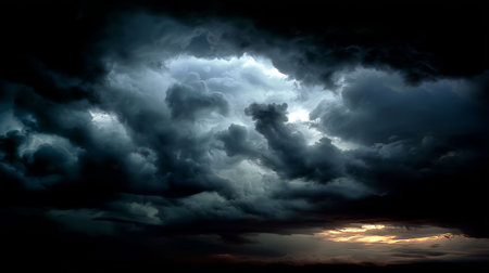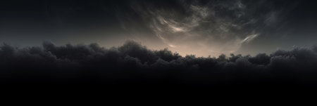 Dramatic dark storm thundercloud rain clouds on black sky background. Dark thunderstorm clouds rainny landscape. Meteorology danger windstorm disaster climate. Dark cloudscape storm disaster gray sky
