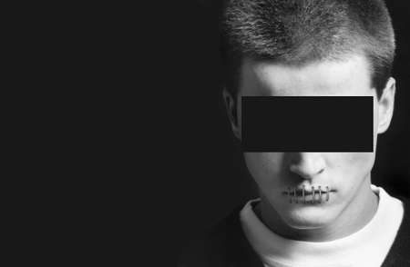 Young with closed lips and eyes isolated on black Horizontal