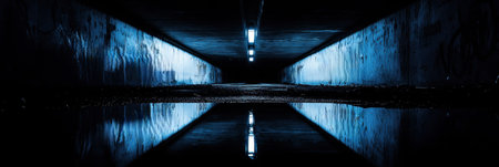 Dark Urban Tunnel Reflection Graffiti Night Cityscape Photography art wet blue wall cold mood water