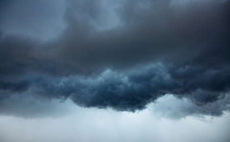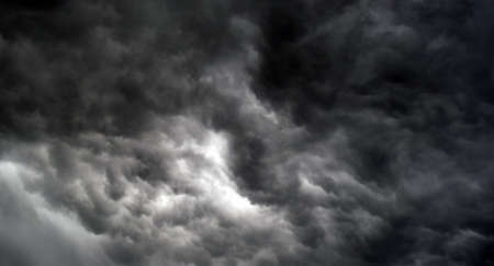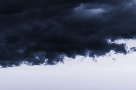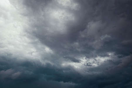Dark monochrome heavy storm clouds before a thunderstorm or hurricane. Dramatic clouds in overcast weather. Cloudscape.