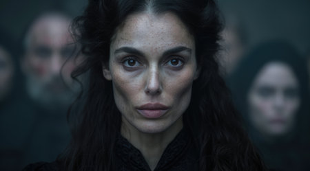 Intense gaze of a mysterious woman