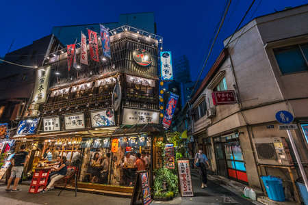 Tokyo - August 3, 2018 : Local people enjoying nightlife and restaurants in Kanda Jimbocho district.