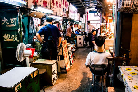 Unidentified Chinese people drink beer at night in a street in Hong Kong.
