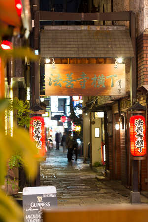 Tokyo, Japan - January 08, 2020: Shinjuku Golden Gai area with a lot of Small Bars in Night Tokyo City Center